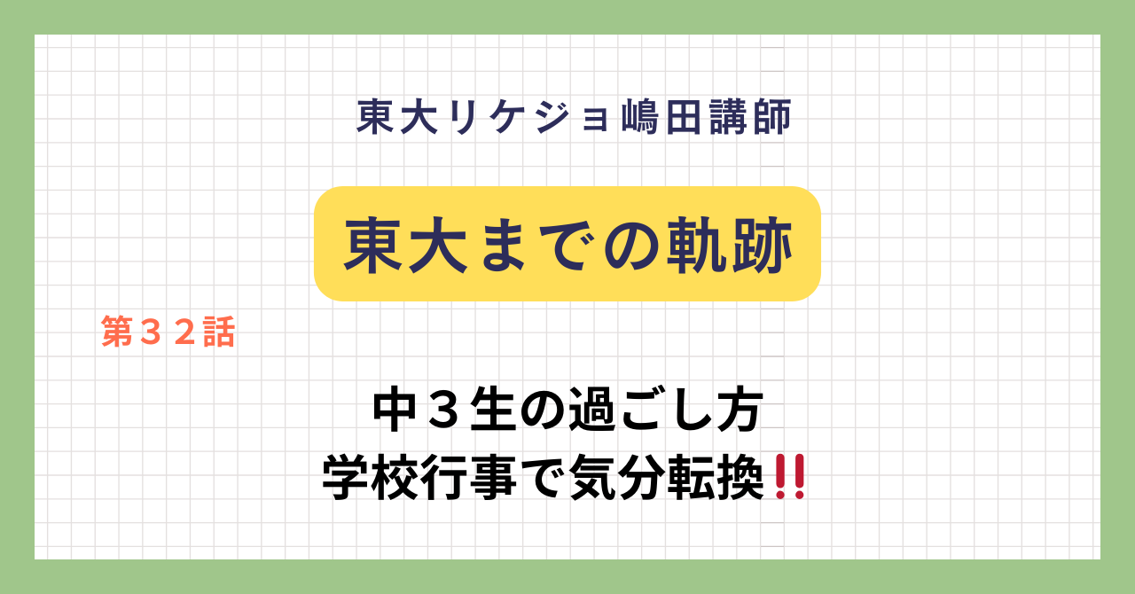 東大リケジョ嶋田講師の東大までの軌跡【第32話】中3生の過ごし方 学校行事で気分転換‼
