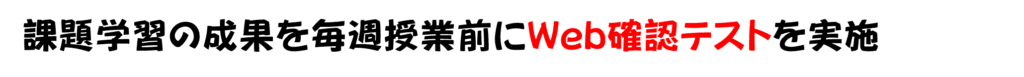 【Web確認テスト】出題された課題とこれまでの学習範囲が理解できているか『Web確認テスト』を実施。授業前40分Webを通じて講師が出題した確認テストをテスト形式で実施します。