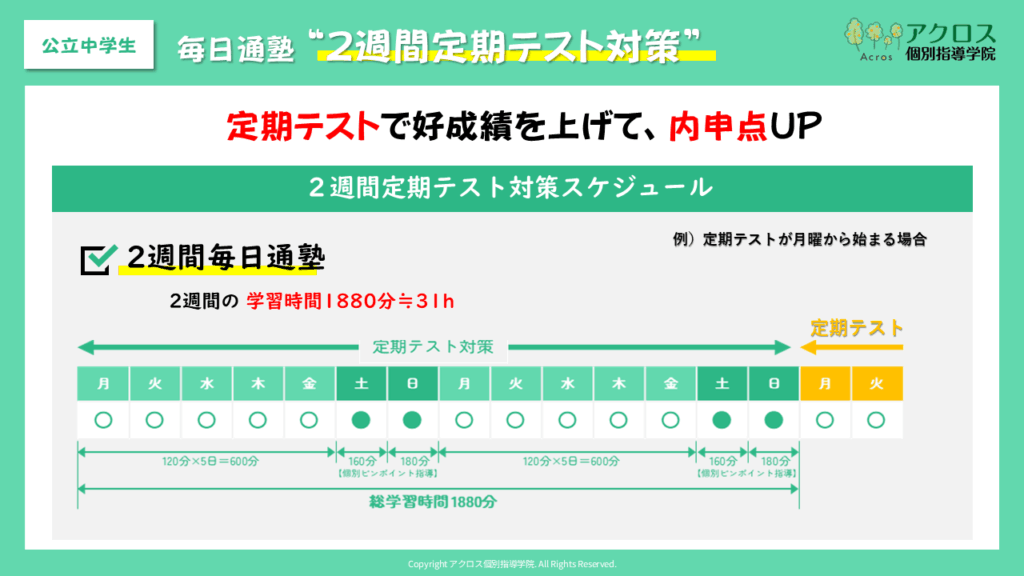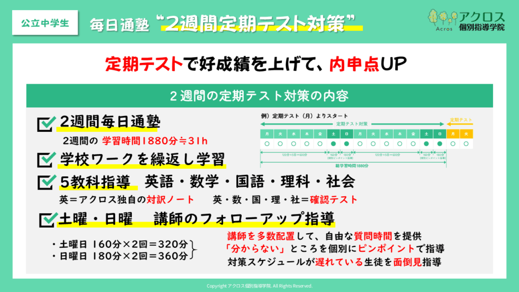 公立中学生が定期テストで好成績を目指すためのコースです。