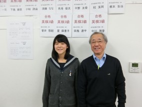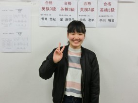 下島さん都立向丘と英検準二級ダブル合格です。下島さんは分からない所をそのままにせず、講師に質問をぶつけてその都度解消していました。その結果英語の実力がみるみるつき、苦手な理科と数学でも得点できるようになりました。まさに努力で勝ち取った都立向丘と英検のダブル合格です。おめでとうございます。上級検定を目指してさらに頑張ってください。