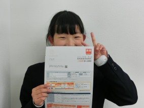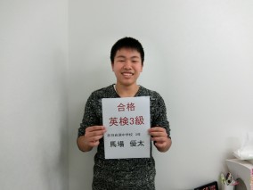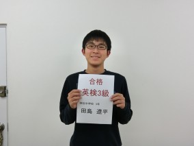 田島君おめでとうございます。今回の英検3級は余裕の合格でした。今回の合格で弾みをつけて、高校入試に向けてますます頑張ってください。