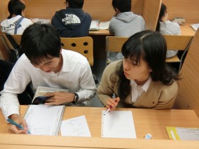 文京高校のAさんは中学二年生から塾に通い始めて高校になっても通塾を続けています。首都大学東京の岡村講師もアクロス個別指導学院OB。きょうは岡村講師の数学の授業。Aさん真剣に岡村講師の授業に取り組んで学んでいます。